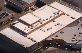 Thermoplastic roof systems are versatile and can be formulated from such chemical compositions as PVC (Polyvinyl Chloride), CPE (Chlorinated Polyethylene) and TPO (Thermoplastic Olefin). Used in single-ply applications, thermoplastics can be obtained in a range of thicknesses and are available in custom colors. Chemical resistance is different for each composition and it is recommended to consult the manufacturer’s literature for specific exposure. |